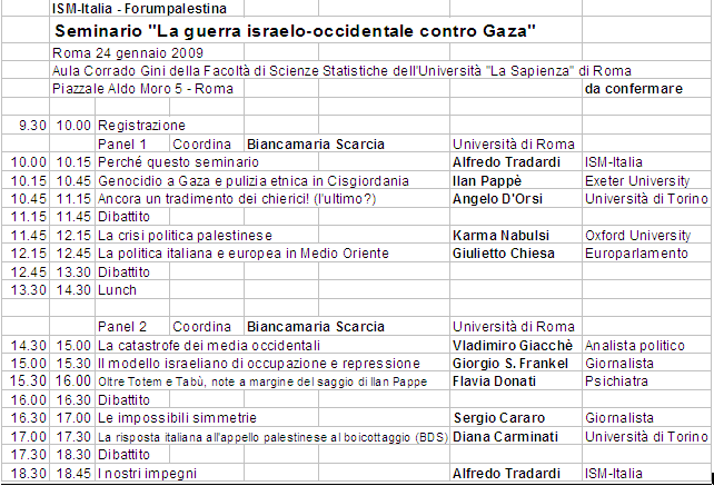Seminario internazionale La guerra israelo-occidentale contro Gaza Roma 24 gennaio 2009