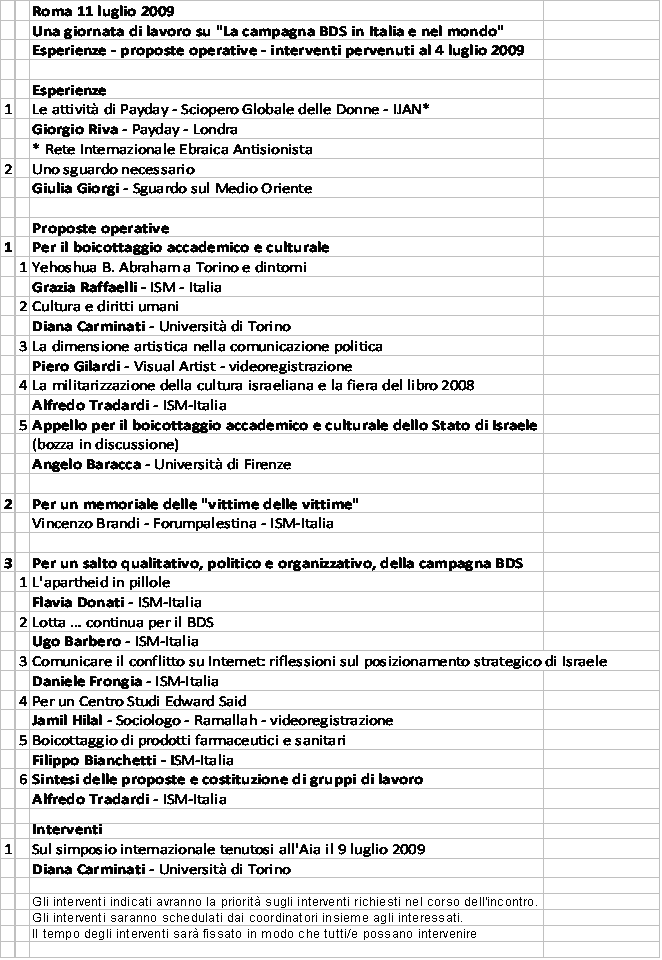 Angelo Baracca, Omar Barghouti, Vincenzo Brandi, Sergio Cararo, Diana Cardinati,